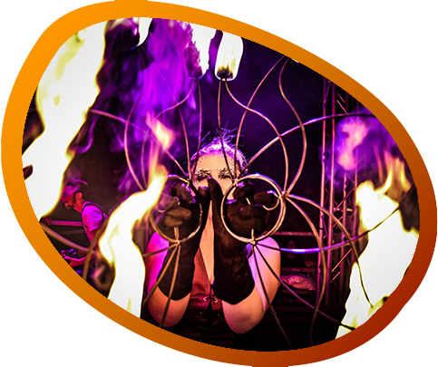 Esibizioni di fuoco, giocoleria luminosa e bolle di sapone per eventi all'aperto o al chiuso come feste, compleanni, cerimonie e matrimoni.